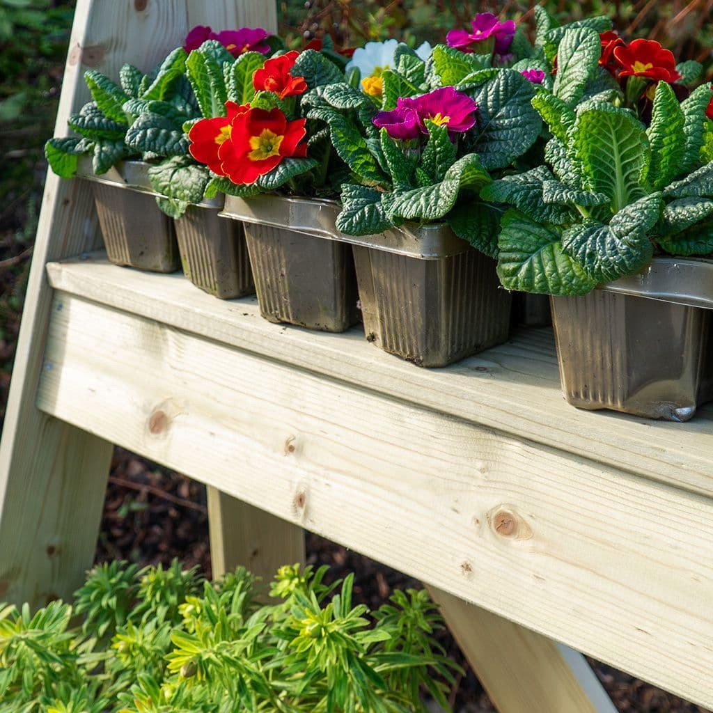 Maximize your garden space with our Garden Plant Stand, a beautifully handcrafted tiered shelving unit designed to sit neatly against a wall, fence, or hedge. Made by our skilled team in the Dublin Mountains, this sturdy stand is crafted from high-quality, pressure-treated timber, ensuring long-lasting durability and weather resistance.