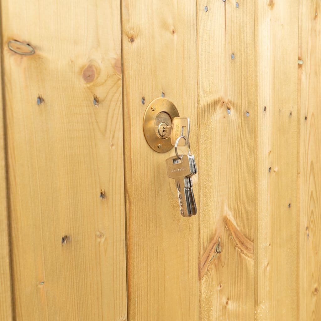 - Galvanised hinges and pad bolt, bolted on for extra security.