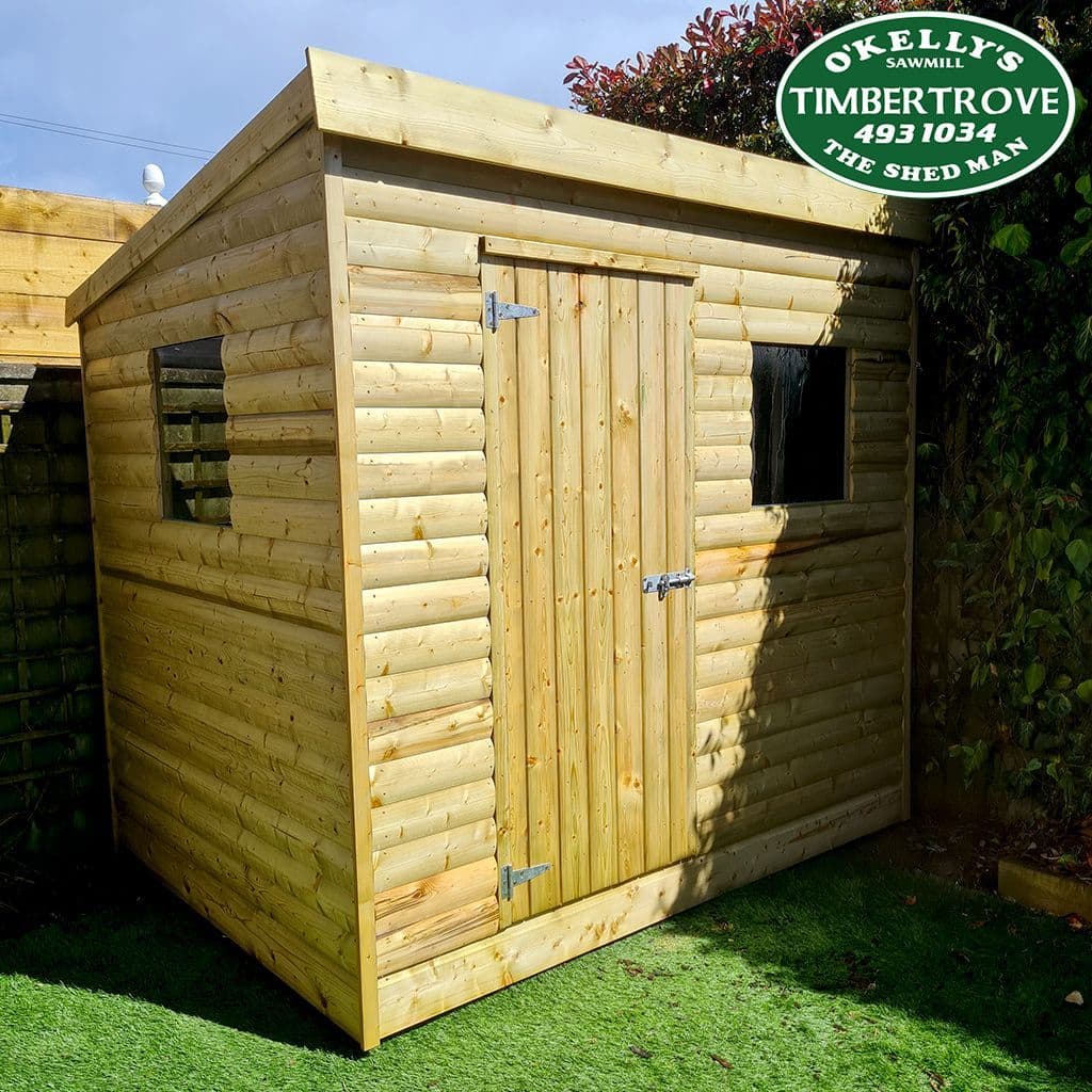 Home / The Ferndale Shed View more images The Ferndale Shed Product Code: FERN4X4T Supplied & Fitted From: Product Code: FERN4X4T Stock Status: In Stock Supplied & Fitted From: Choose a size: 1.2m x 1.2m / 4x4ft 1.8m x 1.2m / 6x4ft 1.8m x 1.5m / 6x5ft 1.8m x 1.8m / 6x6ft 1.8m x 2.4m / 6x8ft 1.8m x 3.0m / 6x10ft 1.8m x 3.6m / 6x12ft 2.4m x 2.4m / 8x8ft 2.4m x 3.0m / 8x10ft 2.4m x 3.6m/ 8x12ft 2.4m x 4.2m/ 8x14ft 2.4m x 4.8m/ 8x16ft 2.4m x 5.4m/ 8x18ft 2.4m x 6.0m/ 8x20ft Upgrade Door: Standard Door Double Door (+€75.00) Stable / Half Door (+€100.00) Upgrade Roof - Steel Roof or Felt Shingles: No To fit 1.2m x 1.2m (+€104.00) To fit 1.8m x 1.2m (+€156.00) To fit 1.8m x 1.5m (+€195.00) To fit 1.8m x 1.8m (+€234.00) To fit 1.8m x 2.4m (+€312.00) To fit 1.8m x3.0m (+€390.00) To fit 1.8m x 3.6m (+€468.00) To fit 2.4m x 2.4m (+€416.00) To fit 2.4m x 3.0m (+€520.00) To fit 2.4m x 3.6m (+€624.00) To fit 2.4m x 4.2m (+€728.00) To fit 2.4m x 4.8m (+€832.00) To fit 2.4m x 5.4m (+€936.00) To fit 2.4m x 6.0m (+€1,040.00) Roof Option (use only if you chose to upgrade): Add Window Box: No Add x1 Window Box (+€15.00) Add x2 Window Boxes (+€30.00) Add x3 Window Boxes (+€45.00) Add x4 Window Boxes (+€60.00) Add Work Bench: No Add 1.2m Work Bench (+€36.00) Add 1.5m Work Bench (+€45.00) Add 1.8m Work Bench (+€54.00) Add 2.4m Work Bench (+€72.00) Add 3.0m Work Bench (+€90.00) Add 3.6m Work Bench (+€108.00) Add 4.2m Work Bench (+€126.00) Add 4.8m Work Bench (+€144.00) Add 5.4m Work Bench (+€162.00) Add 6.0m Work Bench (+€180.00) Add Shelving: No Add x1 1.2mShelf (+€12.00) Add x2 1.2m Shelves (+€24.00) Add x1 1.5m Shelf (+€15.00) Add x2 1.5m Shelves (+€30.00) Add x1 1.8m Shelf (+€18.00) Add x2 1.8m Shelves (+€36.00) Add x1 2.4m Shelf (+€24.00) Add x2 2.4m Shelves (+€48.00) Add x1 3.0m Shelf (+€30.00) Add x2 3.0m Shelves (+€60.00) Add x1 3.6m Shelf (+€36.00) Add x2 3.6m Shelves (+€72.00) Add x1 4.2m Shelf (+€42.00) Add x2 4.2m Shelves (+€84.00) Add x1 4.8m Shelf (+€48.00) Add x2 4.8m Shelves (+€96.00) Add x1 5.4m Shelf (+€54.00) Add x2 5.4m Shelves (+€108.00) Add x1 6.0m Shelf (+€60.00) Add x2 6.0m Shelves (+€120.00) €929.00 RRP: €0.00 Description The Ferndale Sloped Roof, or Lean To Garden Shed is a customer favourite. The sloped roof gives a consistent height inside this shed in comparison to an apex style roof. The sloped roof encourages rain water to run off preventing leaks. All sheds are designed and manufactured in the Dublin Mountains, all prices include FREE delivery and installation. Our sheds are made from the highest quality specially selected pine. Tongued and grooved floor and roof. 22mm thick boards. All roofs are felted with super green mineral felt. Sides made with 125mm x 22mm log pine boards (PT finish). Contact us for other board types. Walls are lined with frame shield which guards against wind, driven rain, snow and dust. Framing: 50mm x 35mm.Door framing:75mm x 35mm. Assembled with coated Ring Shank Nails. All timber treated with Protek wood preservative. Galvanised hinges and pad bolt. Skirting fitted to all our sheds to hide 4inch (100mm) solid blocks which are supplied. This will be dependent on a clear and level site. What is charged as essential extras elsewhere is FREE at Timbertrove. Top quality before and after sales service. Finish Pressure Treated Timber Our premium garden sheds are constructed with the highest quality pressure treated timber for exceptional durability and longevity. Pressure Treated Timber is treated with a preservative which provides an effective barrier against insects & fungal decay, extending it's lifespan. This process involves immersion in a high-pressure tank which quickly forces preservatives deep into the timber, helping it withstand future damage and exposure to the elements. This shed has been expertly designed to withstand the harsh elements of outdoor environments, making it the perfect storage solution for your garden tools, equipment, and other essentials. You can rest assured that your belongings will be safe and well-protected in any weather conditions. Optional Extras Extras available from Timbertrove at an additional cost: Steel Roof: 6.50 per sq ft Extra windows: F.O.C (excl. The Cottage & The Potting Shed) Window boxes: 15.00 each Work benches: 9.00 per linear ft Shelving: 3.00 per linear ft Felt Roof Shingles, available in Red, Green or Black: 6.50per sq ft (Based on floor coverage) Standard Sizes Please note all products are constructed to metric measurements. Imperial measurements quoted are solely for the convenience of our customers. Size (M) Size (approx FT) 1.2m x 1.2m 4ft x 4ft 1.8m x 1.2m 6ft x 4ft 1.8m x 1.5m 6ft x 5ft 1.8m x 1.8m 6ft x 6ft 1.8m x 2.4m 6ft x 8ft 1.8m x 3.0m 6ft x 10ft 1.8m x 3.6m 6ft x 12ft 2.4m x 2.4m 8ft x 8ft 2.4m x 3.0m 8ft x 10ft 2.4m x 3.6m 8ft x 12ft 2.4m x 4.2m 8ft x 14ft 2.4m x 4.8m 8ft x 16ft 2.4m x 5.4m 8ft x 18ft 2.4m x 6.0m 8ft x 20ft We can manufacture other sizes to order, please email sales@timbertrove.com or call our sales office 01-4931034. Additional Information CLICK HERE to view our Frequently Asked Questions CLICK HERE for tips on how to take care of your new Timbertrove product IMPORTANT DELIVERY AND FITTING NOTE: Currently we offer FREE fitting and delivery of this product to the greater Dublin area only. All other areas please contact our sales team. Click here to find out more about our delivery details. Site Requirements & Recommendations A clear and level site is essential for the construction of any unit ordered. Allow approximately 12"/30cm between new unit and any existing fence or wall. Access required: Side entrance with no overhead height restrictions or similar. If necessary please contact us for clarification. Invest in the best for your garden with a Timbertrove Garden shed. Trust in its exceptional quality to stand the test of time and provide you with a reliable storage solu